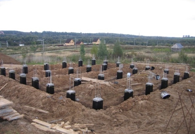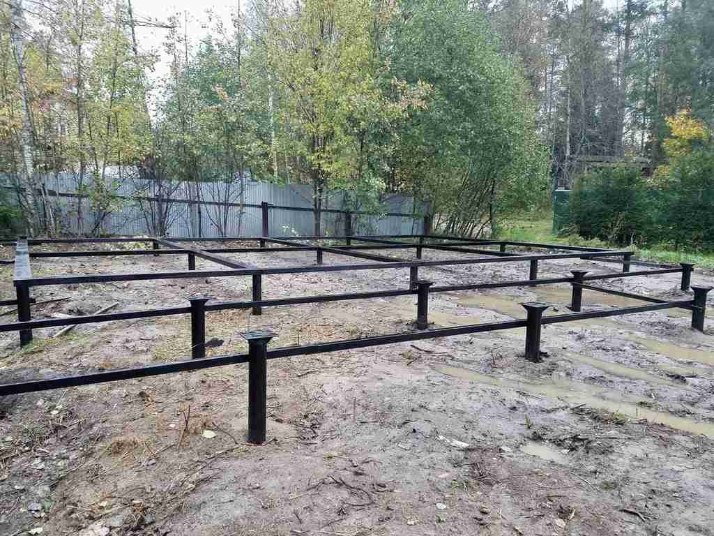 Ленточный фундамент на бетонных сваях